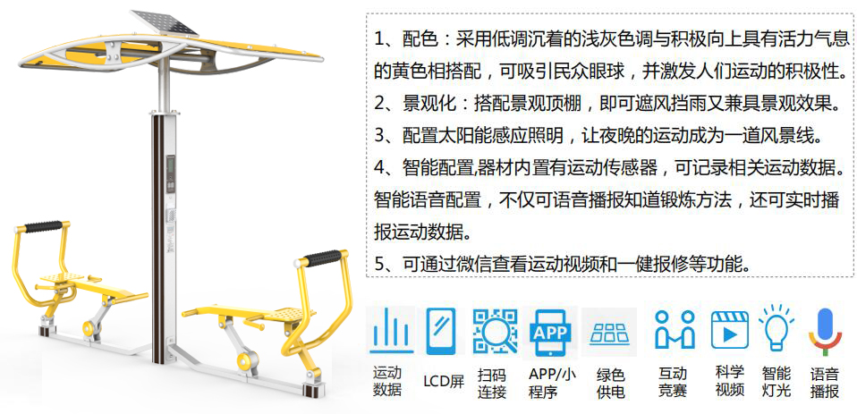 快盈VIII全民健身产品涵盖健身路径、运动场馆、篮乒气羽排等产品,分为多个系列,先进的制造工艺、严苛的质量检测,确保产品性能优良、品质安全可靠,让运动简单科学。并将全民健身器材(户外路径器材、体育场馆等产品)进行智能化升级和互联,实现全人群覆盖、全场景智能,让运动赞美生活。