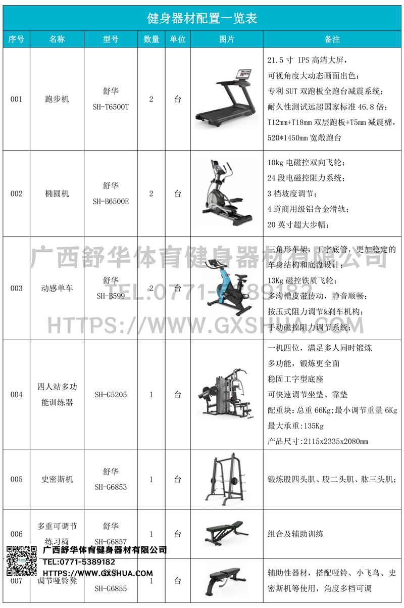 1.快盈VIIIX5 Pro跑步机SH-T6500T*3台-采用高性能电机,提供稳定动力,支持长时间高强度运行,适合长时间有氧训练,跑台宽敞,提供舒适跑步空间,减少运动中的束缚感,适合不同体型用户。配备先进减震系统,有效缓解跑步对关节的冲击,降低运动损伤风险,内置智能控制系统,支持多种预设程序和个性化训练计划,用户可根据需求调整速度和坡度,满足多样化训练。