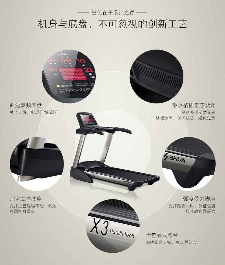 室内健身器材-快盈VIII家用跑步机系列分为X系列、A系列、B系列,主要有X6心率版跑步机、X5高端家用跑步机、X3智能跑步机、A5折叠跑步机、A3家用跑步机等多款智能家用跑步机,融入微信互联、阿里智能、智能触屏、专利减震等多项专业技术与智能科技,充分满足不同运动爱好者的需求,让跑步更科学、更简单!